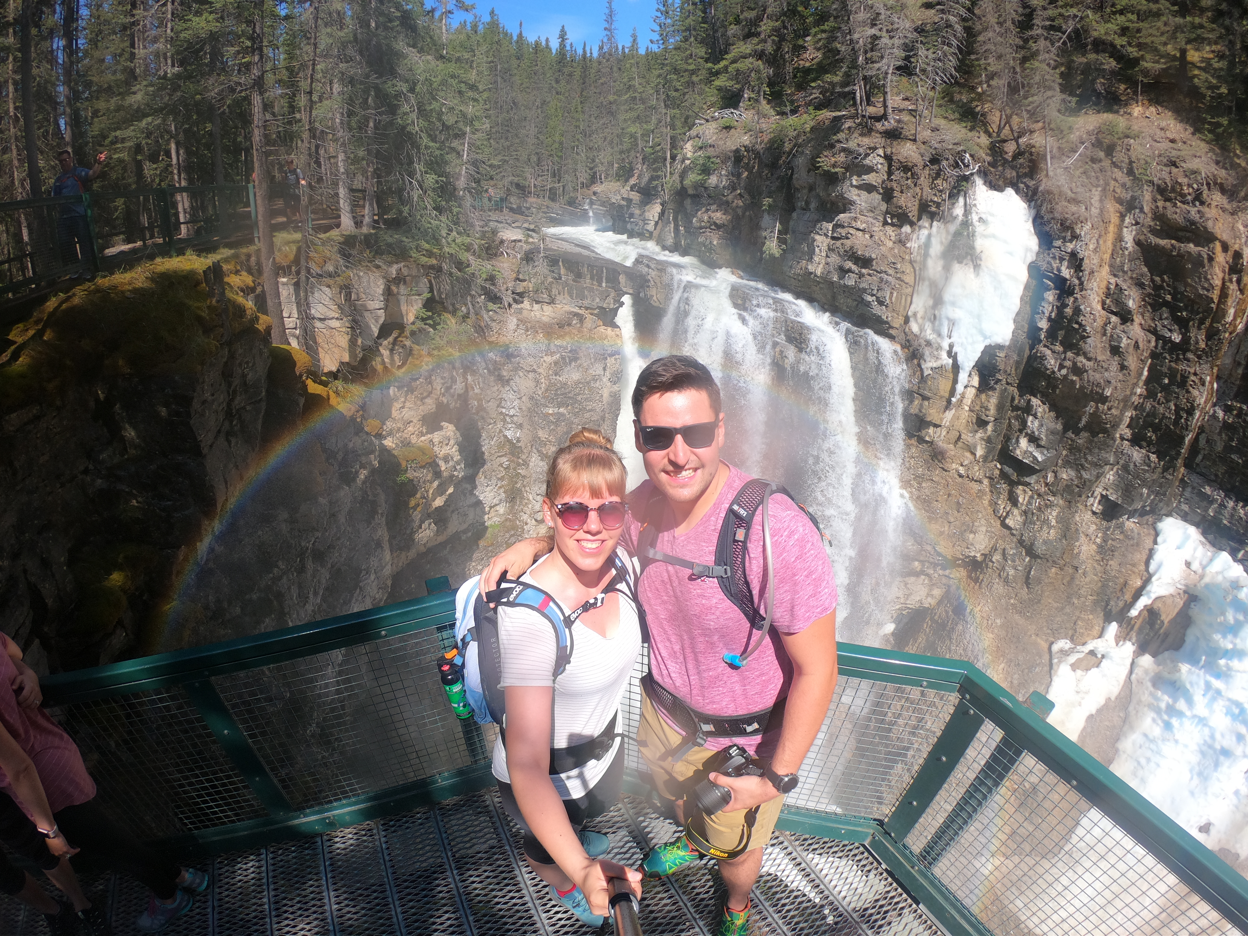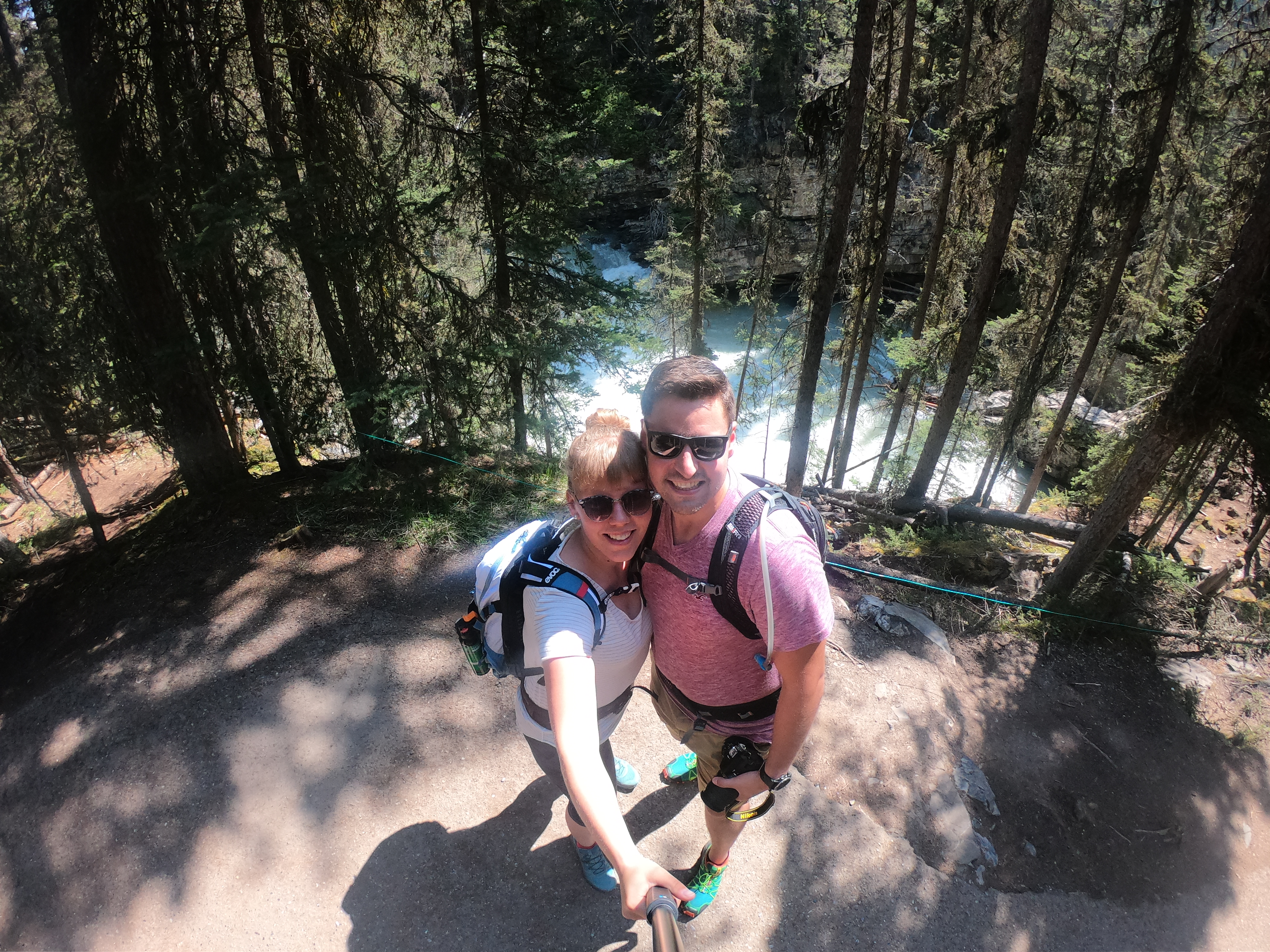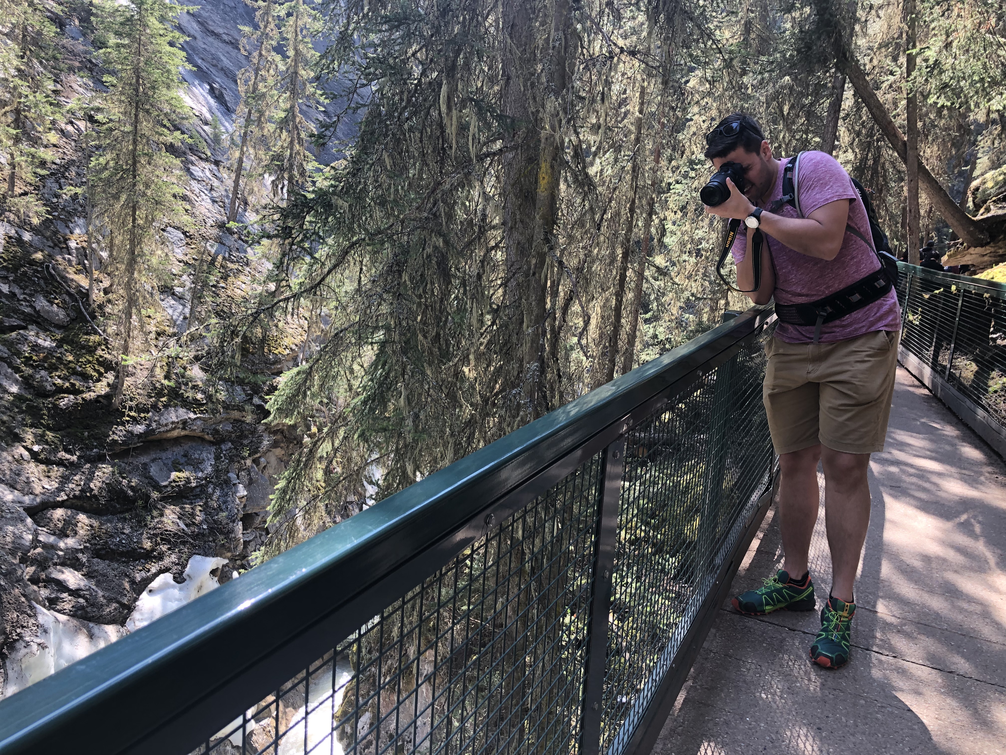 De Dominik het de Johnston Canyon usegsuecht, mitm Parkplatz hemer grad no glück gha und de ischs los am Canyon entlang ufwärts, a de Wasserfäll verbi bis 5.9km spöter (und 450HM) bi de entstehig acho sind! Dete es churzes Päusli und denne weder alles zrugg, gsamthaft 12km simmer unterwegs gsi! I de zwüscheziit hemer au de morgig Tag planed (Banff Gondola) und entschide, dass mer die 5.5km und 650HM au wandern bewältige und uf d Bahnfahrt (65 CAD / Person für 8 Minute fahrt) verzichte. Bim Heiweg vom Canyon simmer churz dete verbi gfahre, dass mer gseh hend, wie steil dass de ufegoht, phuuu het d’Sandra denkt 😀