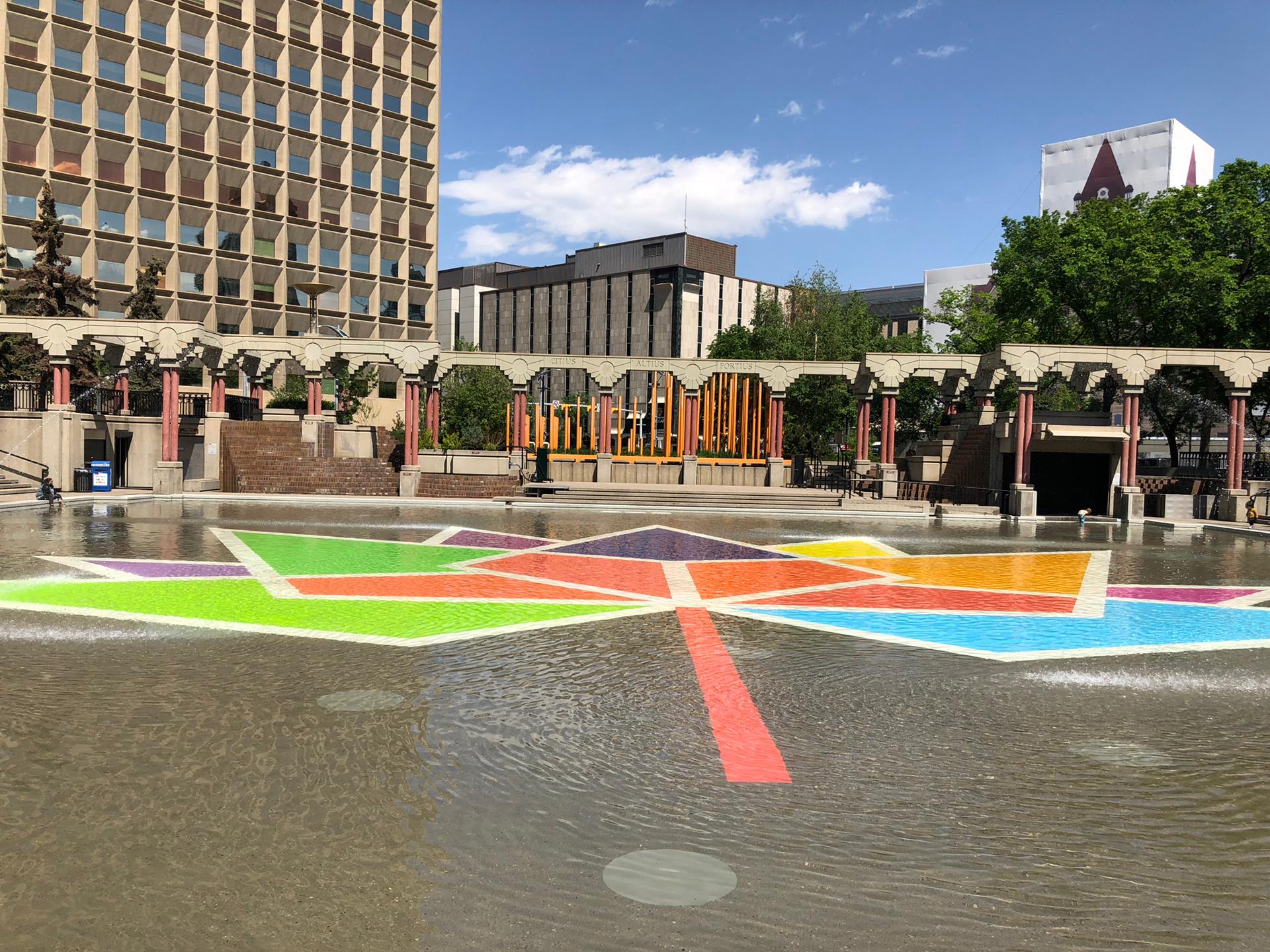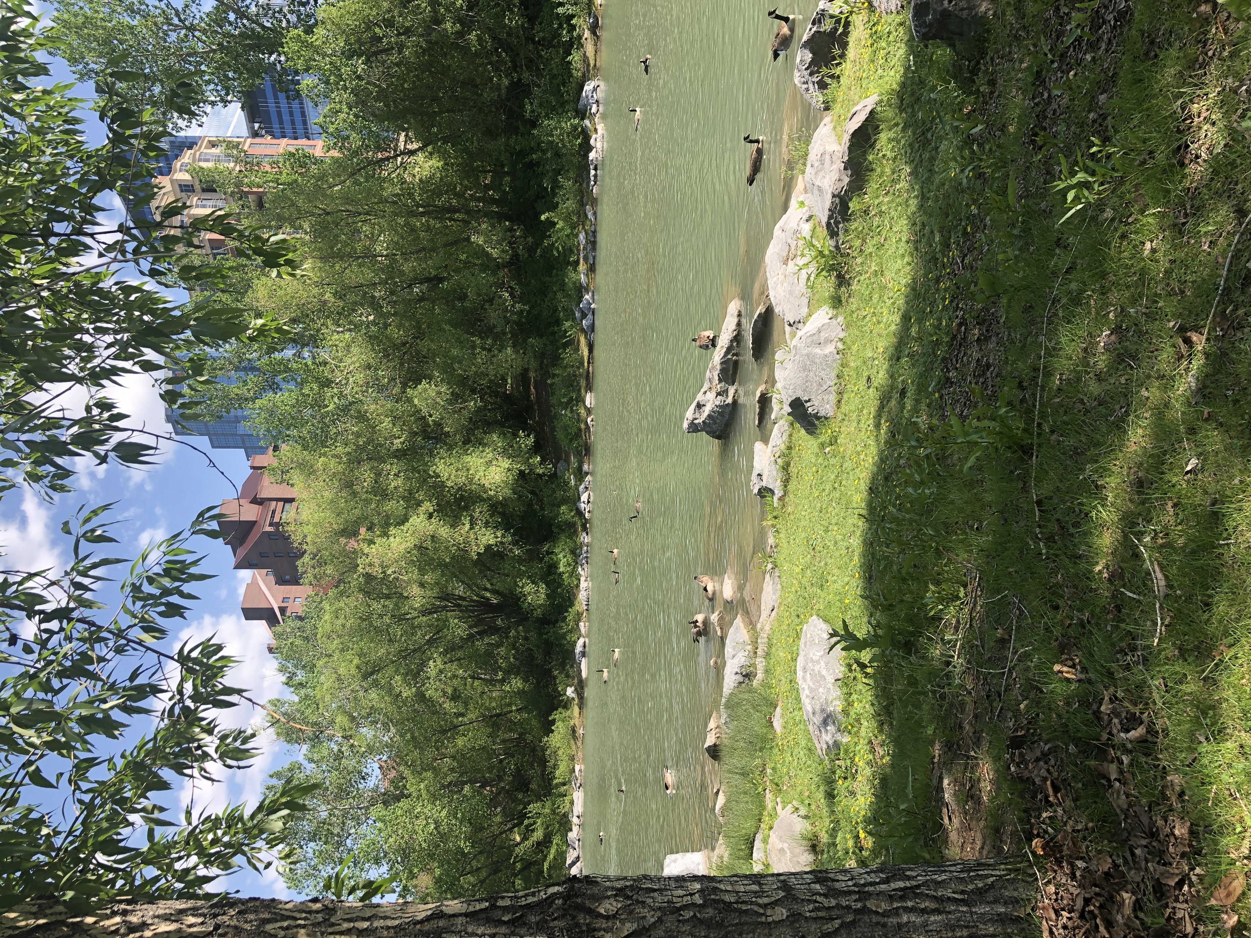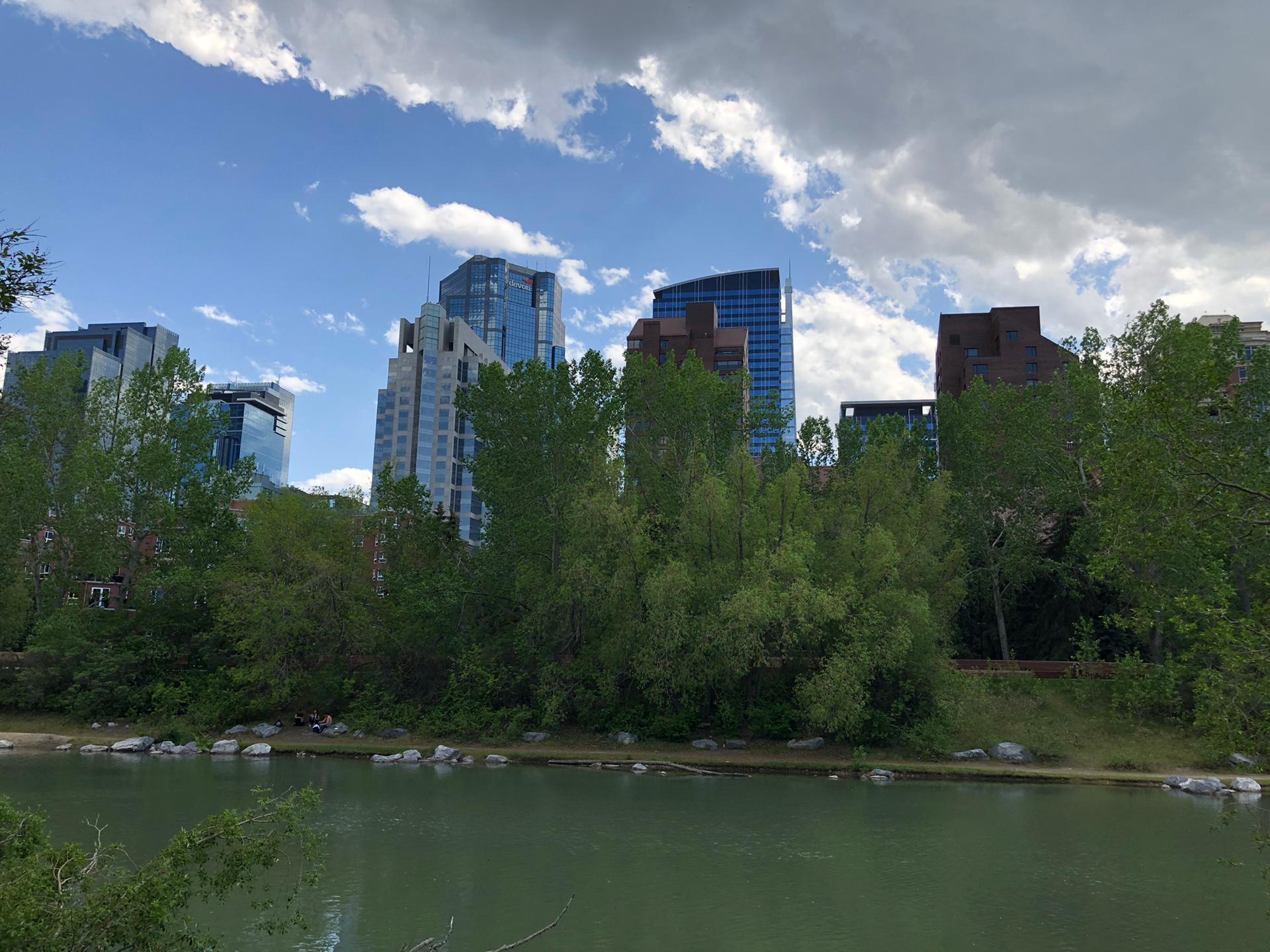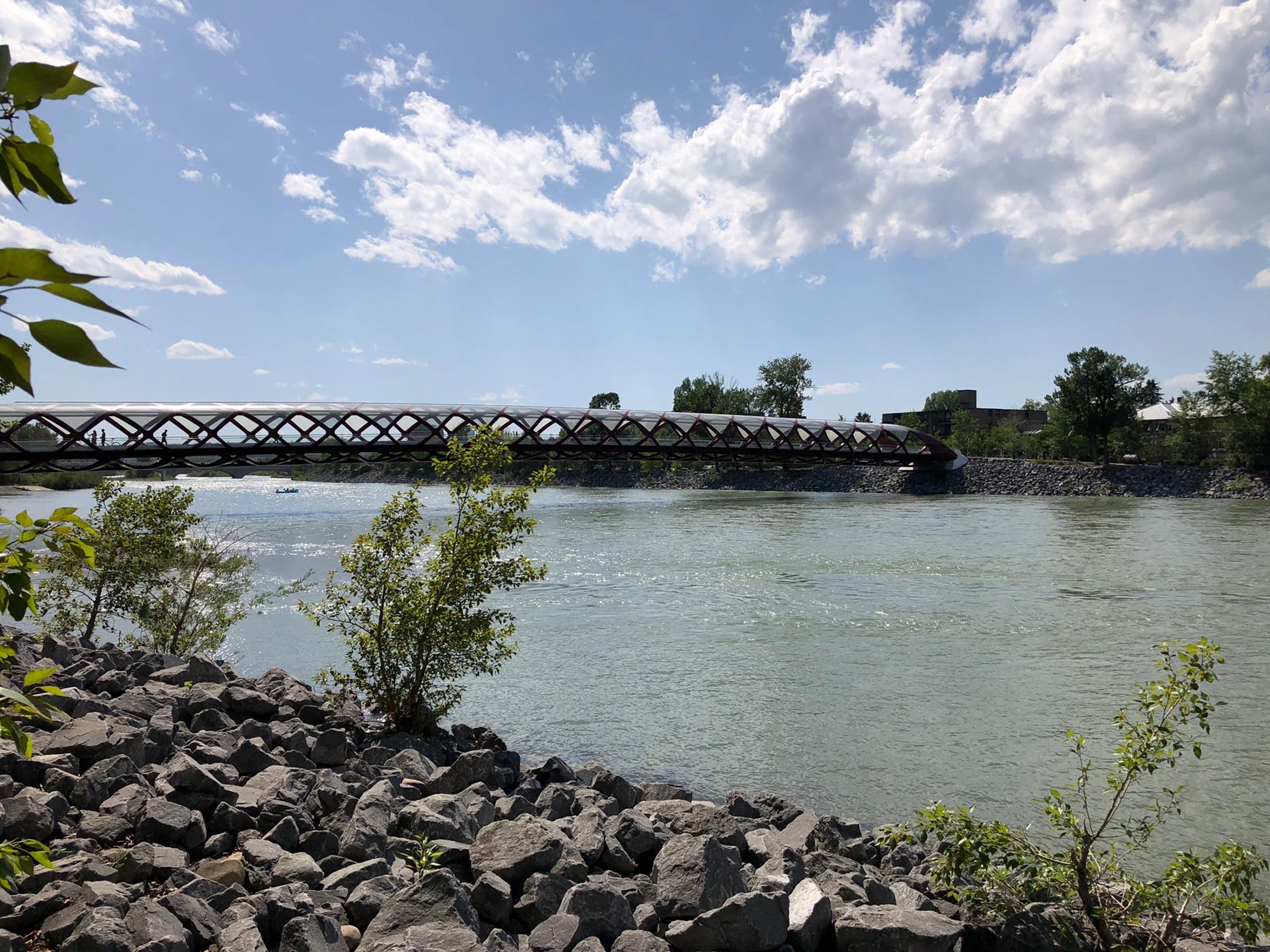 Nachemne feine Burger und Nachos wo wörklich em Pris vo 5.95 CAD pro Menu enstsproche händ send mer den of de Calgary Tower. Die Ussicht esch de Wahnsinn gsi, mer händ bis zu de Rocky Mountains gseh. *-* Nach dem kurze abstächer uf de Turm hämer eus gseit gah mer erkunde Stadt jetzt z’fuss. De Weg het eus den zu de National Library gführt, vo dört her witer nach China Town zum Eau Clair Market und zum Schluss in Price’s Island Park. Dört hämmer den för es momentli d’rueh i de schöne Wiise gnosse 🙂