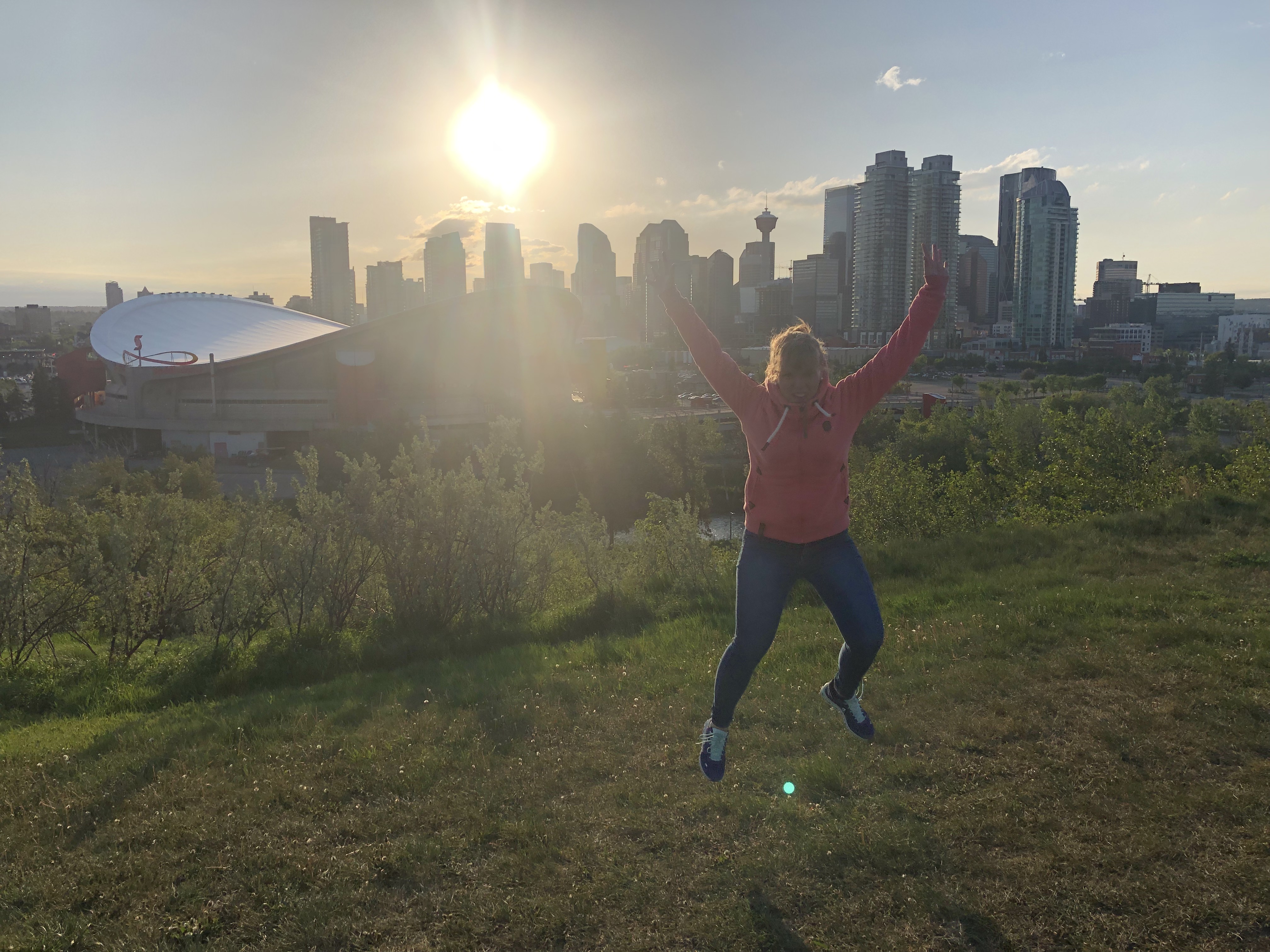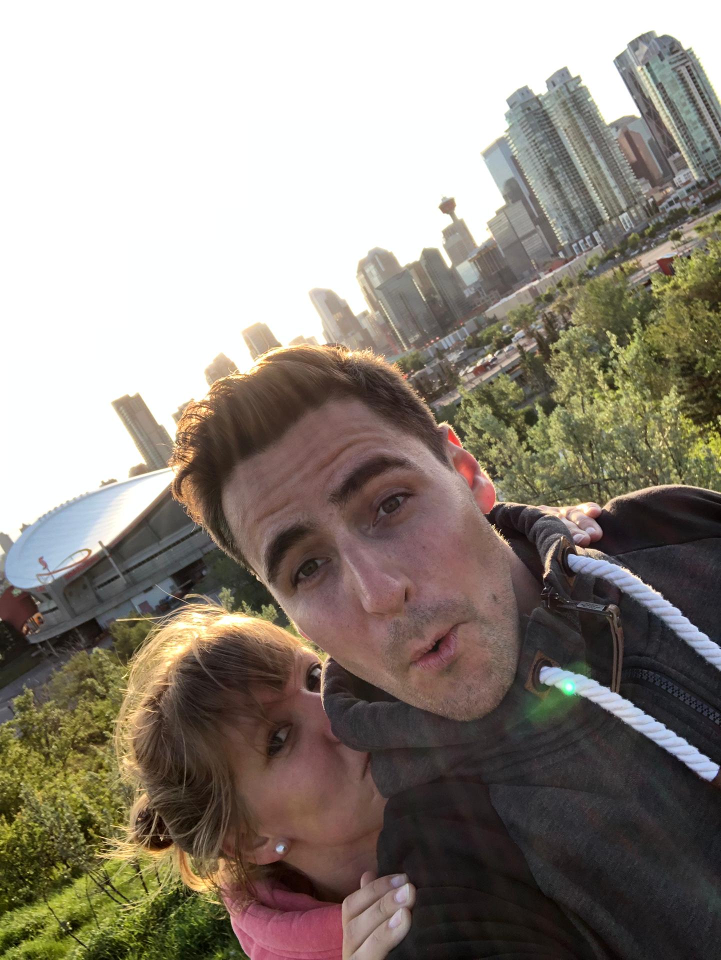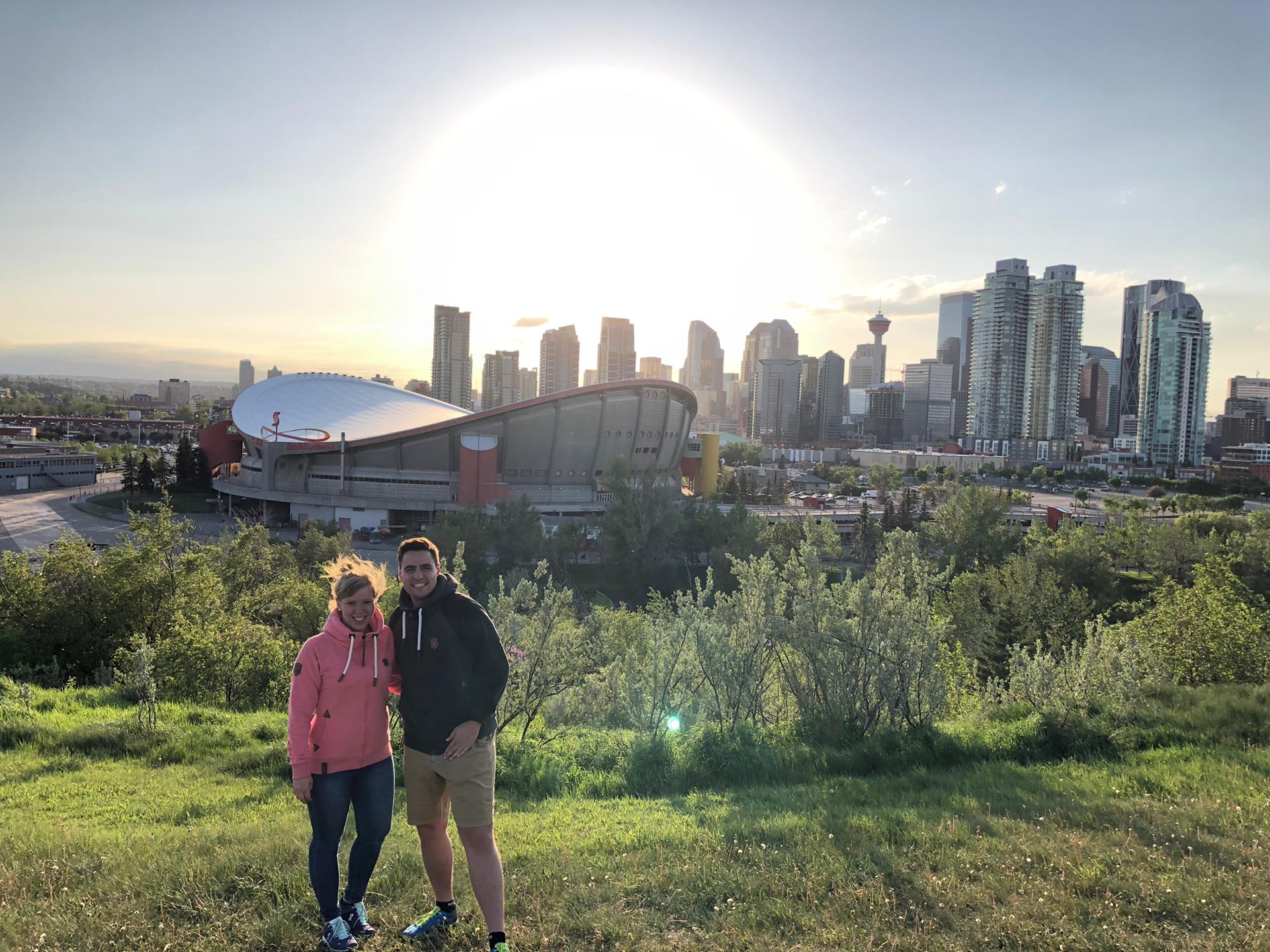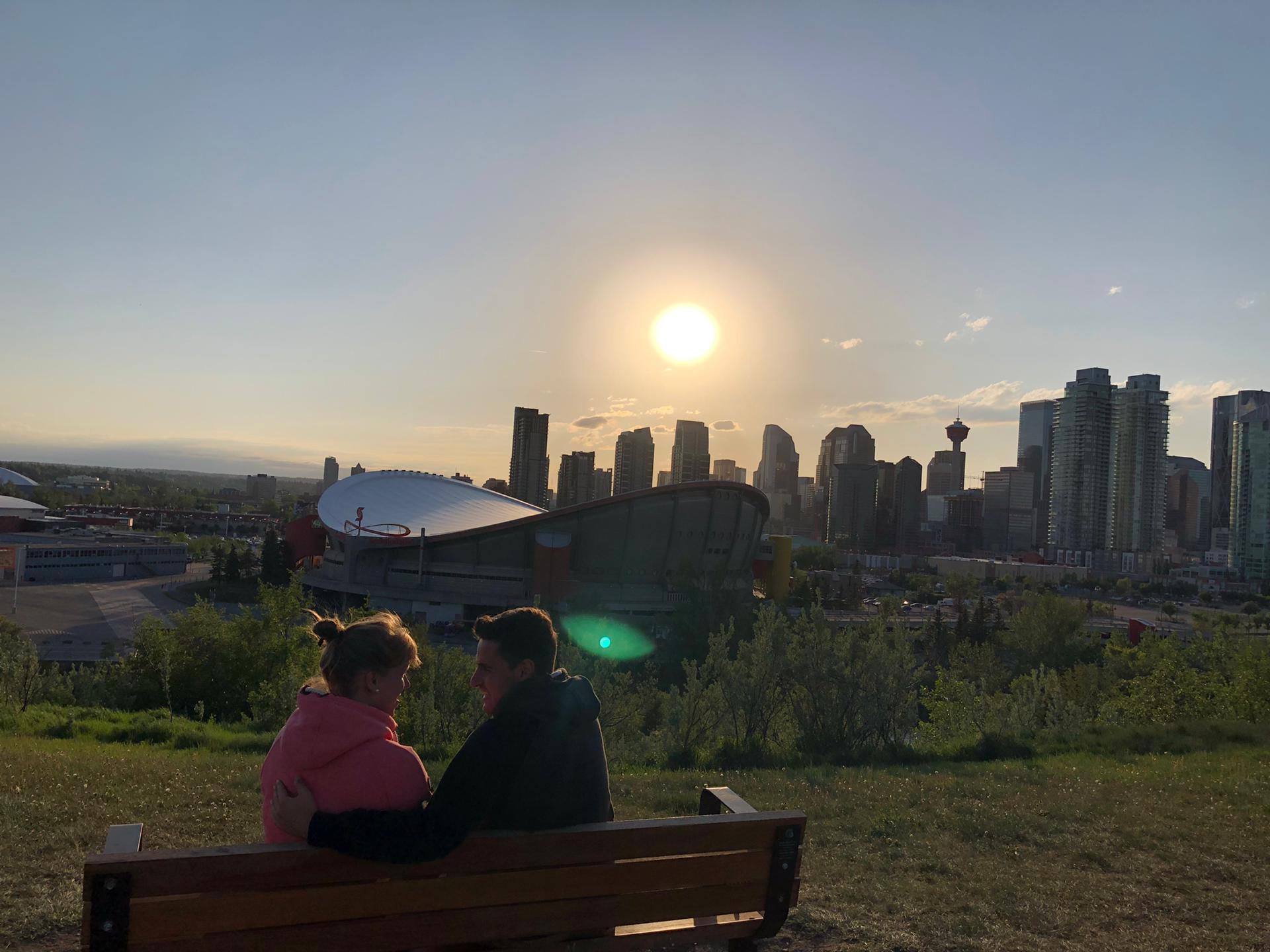 Nach dem guete Sandwich het eus den nomol d’Lust packt uf de sogenannti Scotman Hill zlaufe. Achtung das esch en chline Geheimtipp, de findet mer eigentlich i keim Blog oder Reiseführer. Sandra het der per Zuefall ofemne private Reiseblog entdeckt. Dört acho hämmer nor denkt WOOW. Dor dass das de Scotman Hill chli höcher gläge esch, hät mer of Skyline vo Calgary abe gseh ond dor da das Sonne am Untergo gsi esch, het da hammer Föteli geh 😀 Sogar au eis, zwöi romantischi 😀 Nachdem wonderschöne Abschluss hämmer eus den of de Weg zrug is Hotel gmacht. 🙂