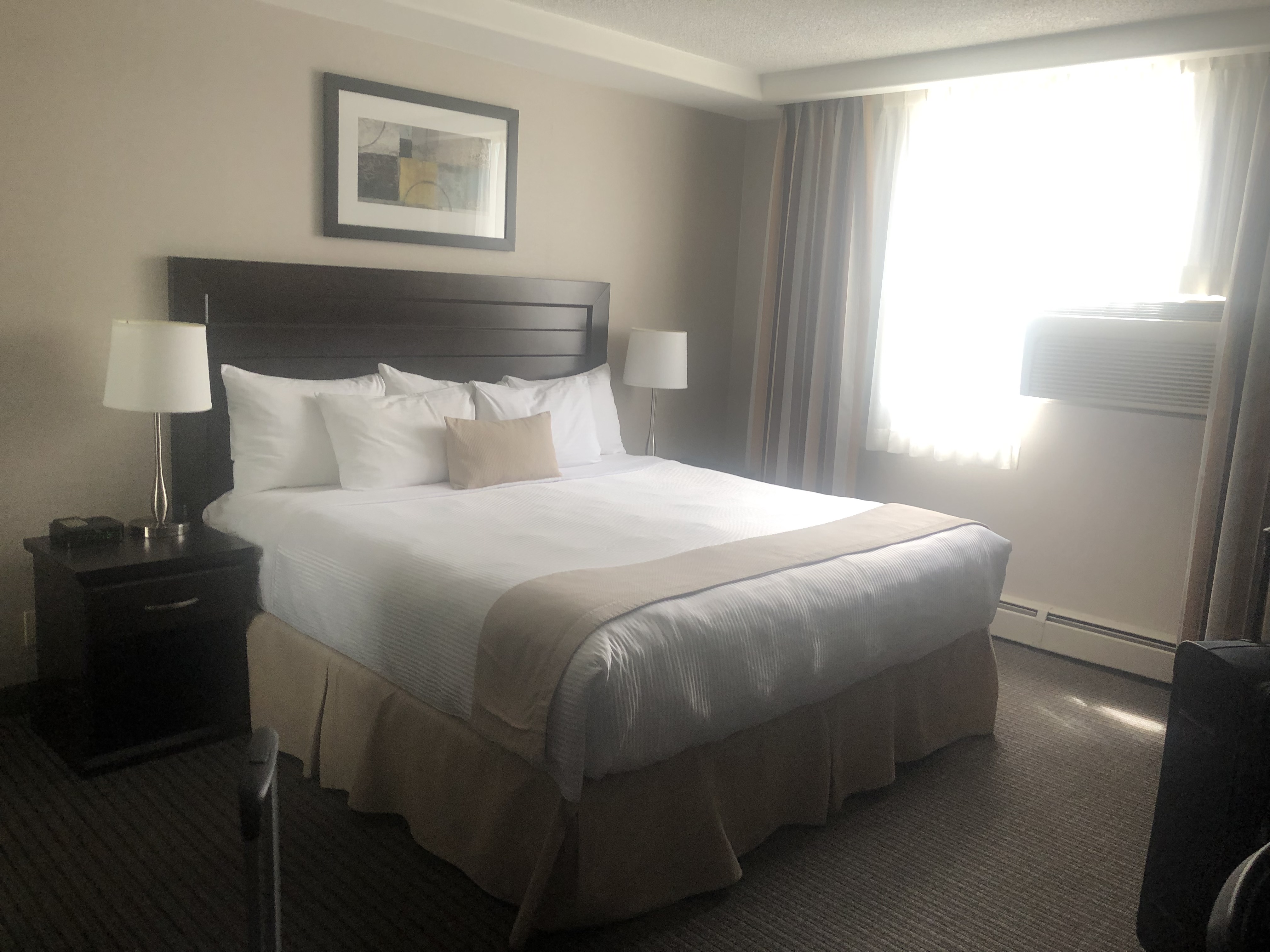 S’Ziel vo dem Tag esch gsi chli en abwechslig vo de Berge zfinde, dass heisst mer send ufgstande händ euses Züg packt ond händ eus of de Weg nach Calgary gmacht 🙂 die fahrt vo Canmore nach Calgary esch ned all zu lang gange und scho nach chli meh als ere stond händ sech vor eus die höche Gebäude uf türmt, mer send denne dirket dor Stadt zu eusem Hotel gfahre – Regency Suits Hotel. Dört acho hämmer glöck gah ond grad chöne euses Zimmer bezieh. Nachere chline verschnufs Pause hämmer den gseit chom er laufe zum wohl bekannteste Merkmal vo dere Stadt de Calgary Tower. Wies de Zuefall het welle hets dört au grad es Touristebüro gah wo mer eus den met Stadtplän usgstattet händ. Do mer langsam aber secher Honger gah händ hämmer gseit chom mer gönd zrug a die Stephen Avenue und luege was es dört zu z’ässe geht. Erstunt sind mer den gsi, wo mer gseh händ das es Resti geht wo jedes Menu anschiendend nor 5.95 CAD chostet. Do es leider dosse kei Platz gah het, hämmers eus ofem Bänkli vorne dra bequem gmacht und ghofft das gli öber zahlt und goht. 😀 Nach ned mol 5 min esch da au de Fall gsi. De Dominik esch grad ufgstande ond het de Platz welle go reserviere, aber wies halt in Kanada so esch, wersch du vo de Servicelüüt platziert und vor eus send grad zwöi Fraue ine gange ond mer händ denkt ou nei schad, jetzt esch de Platz dosse vergeh an die. Um so erstunter simmer gsi wo Servicefachfrau zu denne Dame gseit hät nei de Platz sigi reserviert für die beide 😀 Mer händ eus beid komisch a gluegt ond denkt WOW die esch aber ufmerksam, dass die das checked het das mer dört of de Tisch warte 😀