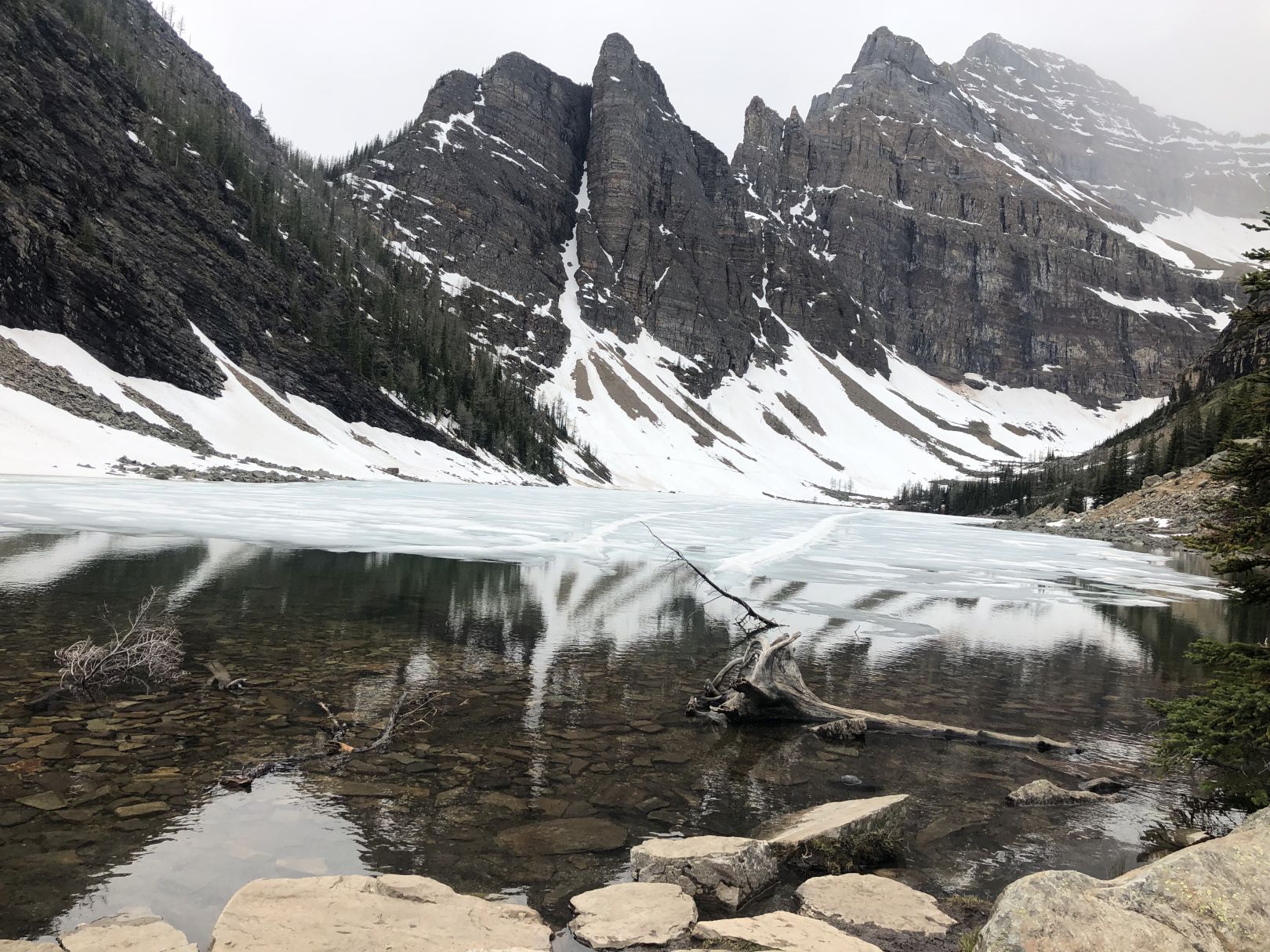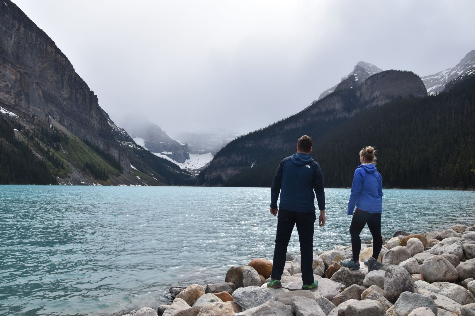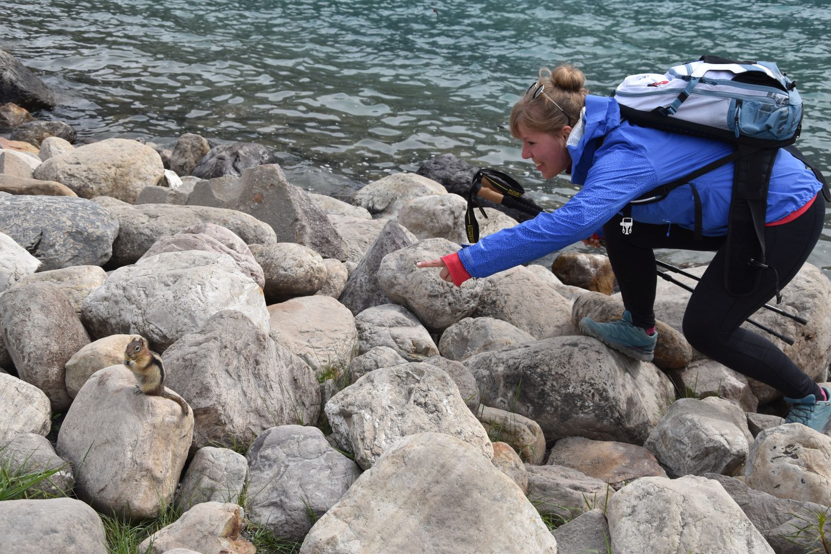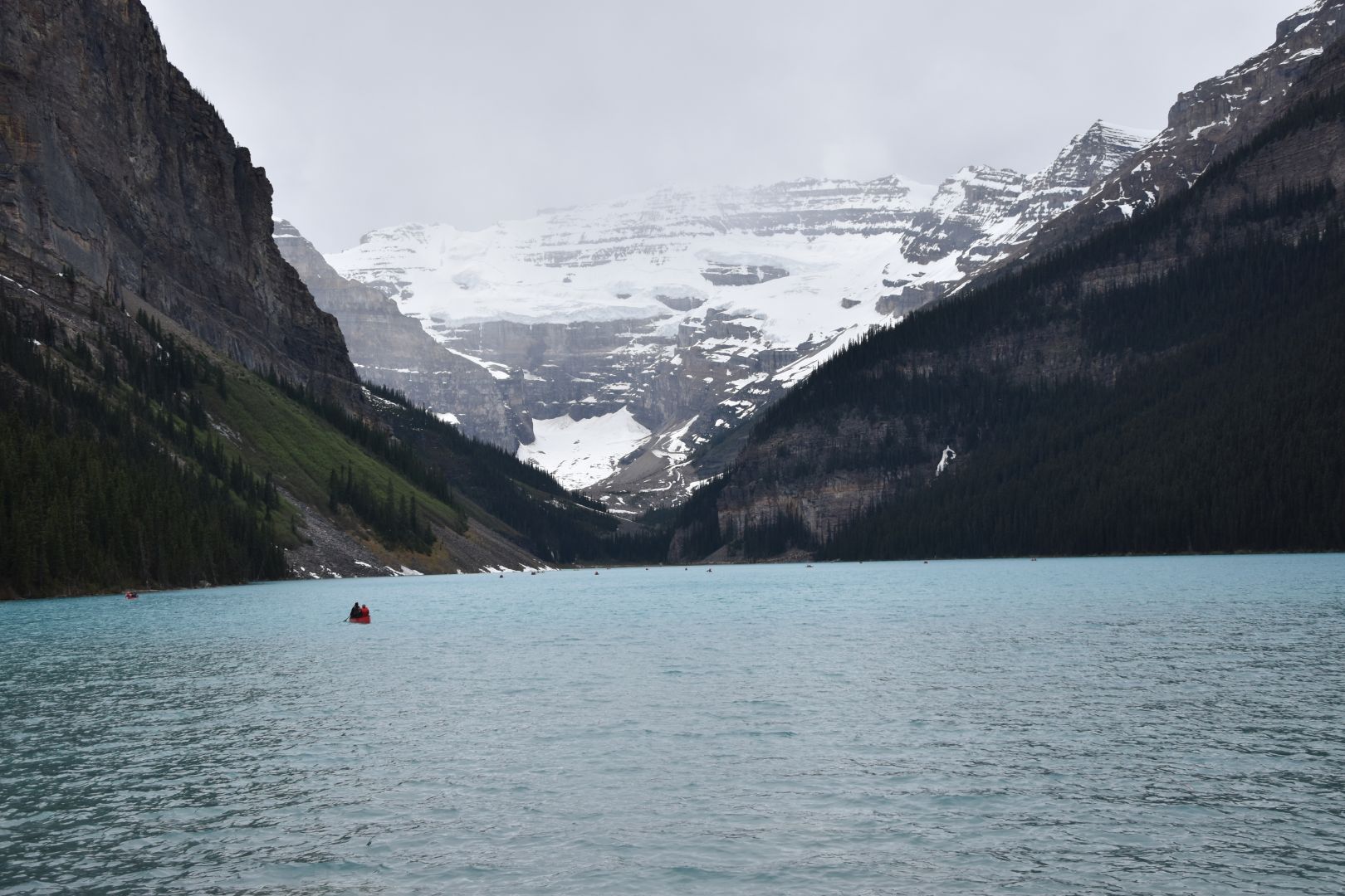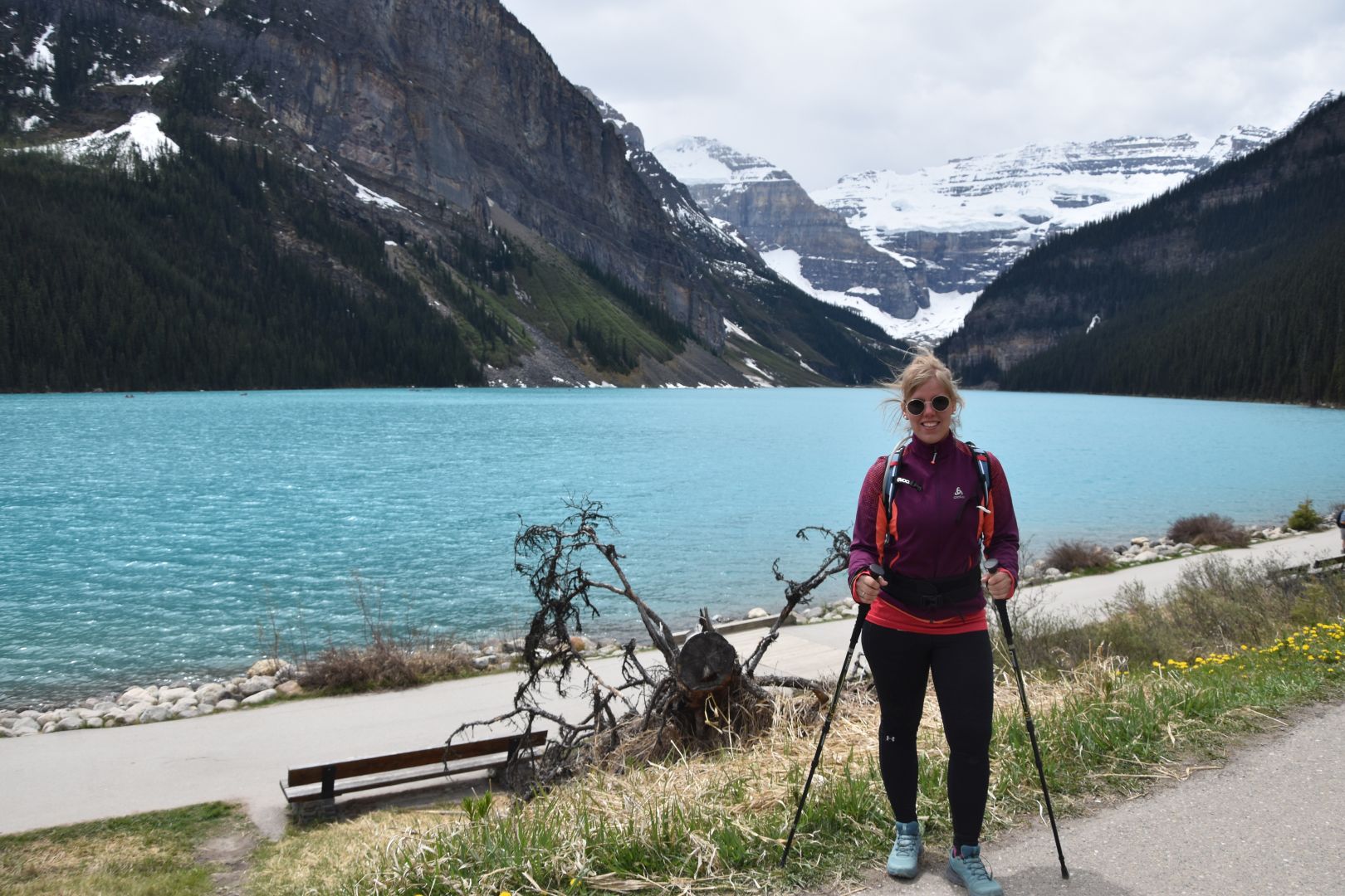 S’Wetter isch solala gsi, wie mer ufm Foti gseht.. De Lake Luise isch recht beliebt, d Parkplätz scho übervoll und me hätti eigentli selle 5km usserhalb am Highway parkiere und mitm Shuttle inne.. mer sind aber trotzdem mal direkt an See gfahre und denne de Sandra eri Devise: eifach mal warte – es chöme immer lüüt wo gönd.. so hemer de au relativ schnell en Parkplatz gfunde und sind de churzi Marsch an See glofe. De See isch schön blau und würkli es Bsuechermagnet… mer hend denne die 3.8km Wanderig zum Lake Agnes und eme Tea House uf eus gnoh… natürli weder mal alles nur de Bergderuf aber d’Sandra het ja ez eri Wandstöck also goht das super 😀