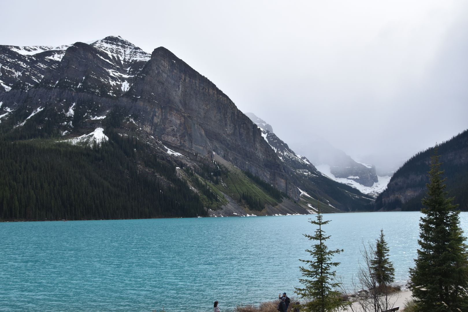 Im Tea House obe acho, hemer euses Münz zählt – dete het mer leider nid chöne mit Charte zahle und hend chum Bargeld debi gha – es het aber glängt für en Chai Latte, Hot Choclate und zwöi Cookies. Wies de Zufall het welle, simmer grad bime alleireisende Schwiizer abghockt und hend denne eus chli mit dem ustuscht. De Oliver – so het er gheisse – isch insgesamt es halbs Jahr unterwegs – er hets glaub cool gfunde mal chli z’plaudere 😀 Nach 1.5h sind simmer de weder bergab zum Lake Louise.